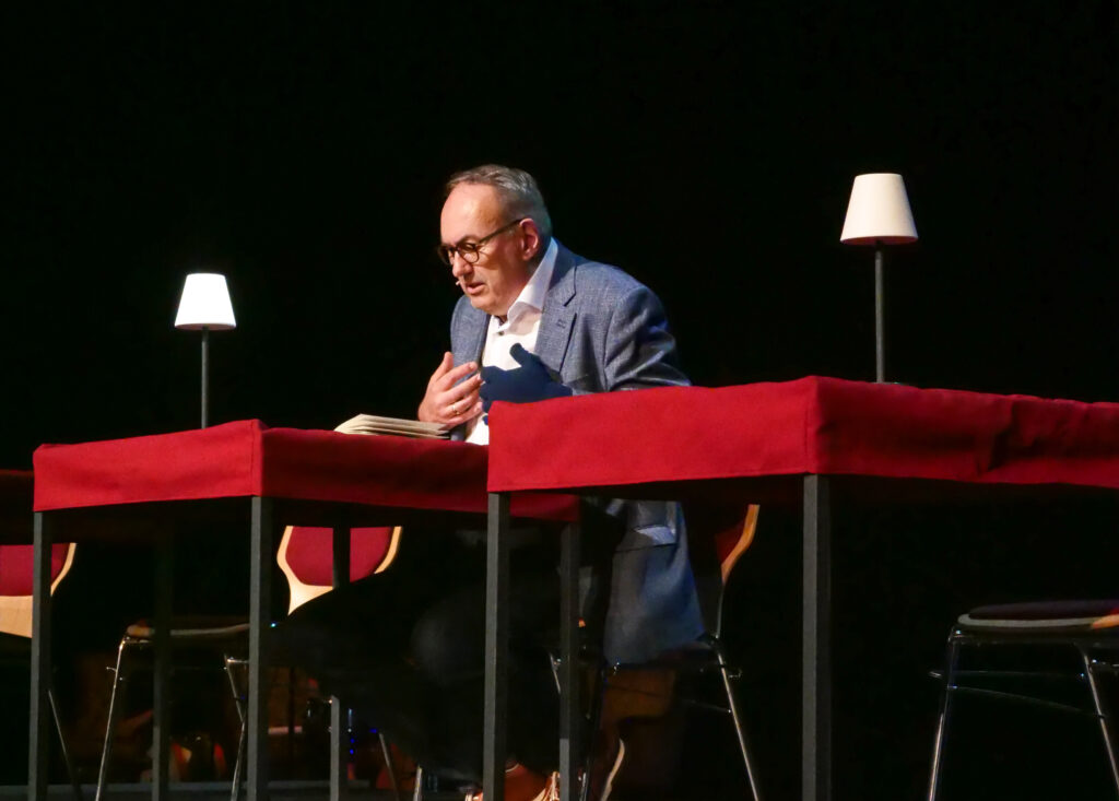 Aber auch ernste Themen kamen zur Sprache, und das nicht nur bei den erwachsenen Vortragenden: In der Jugendstunde zum Thema „Krieg und Frieden“ trugen Schüler:innen Ausschnitte vor aus Liz Kesslers „Als uns die Welt gehörte“, einem historischen Roman über die Zeit des Nationalsozialismus in Wien, und aus Angie Thomas‘ „The Hate U Give“, einem zeitgenössischen Roman über den Kampf gegen Rassismus in den USA.