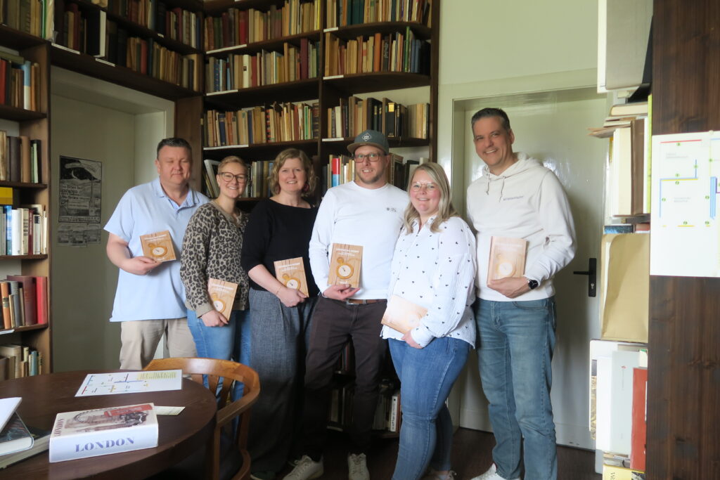 Am 28. und 29. März konnten Neugierige erneut den Escaperoom „Chrononauten. Rettet die Literatur von morgen“ im Niederrheinischen Literaturhaus spielen, den Mitglieder der Schreibwerkstatt „Satzgefüge“ von August 2024 bis Februar 2025 entwickelten. Sechs Gruppen stellten sich der Herausforderung, innerhalb einer Stunde Texte aus einer gestohlenen Anthologie aus der Bibliothek des Niederrheinischen Literaturhauses zu retten.