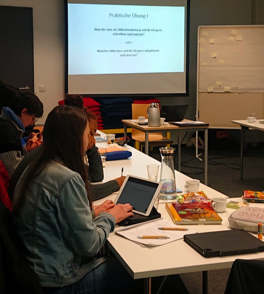 Nach einer kurzen Vorstellungsrunde, in der alle Teilnehmenden sowohl ihre Motivation für die Teilnahme als auch ihr persönliches Lieblingsmärchen nannten, begann die gemeinsame Arbeit ohne lange Anlaufzeit. Einige Mitglieder der Werkstatt hatten dem Autor bereits im Vorfeld Fragen zukommen lassen, die Handel als idealen Einstieg nutzte. Schnell entwickelte sich ein Gespräch darüber, was ein Märchen eigentlich ausmacht und wie sich Märchenadaptionen sinnvoll von Nacherzählungen oder Märchen-Fantasy unterscheiden. Mit Geduld, Humor und vielen Beispielen erklärte Handel, warum diese Begriffe nicht nur theoretische Kategorien sind, sondern hilfreiche Werkzeuge für das eigene Schreiben.